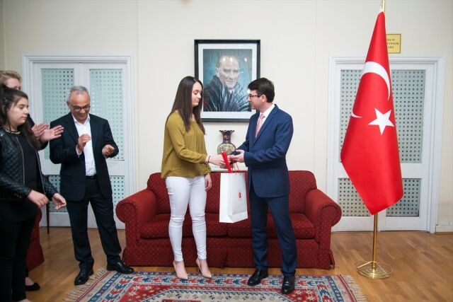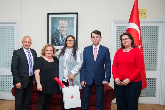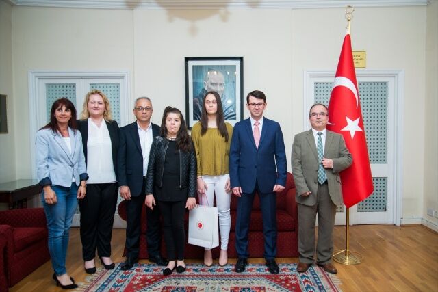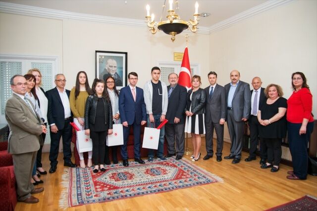 İngiltere'deki Türk okullarından mezun olan ve İngiltere'de yapılan üniversiteye giriş sınavında ülke çapında dereceye giren 3 öğrenciye, Türkiye'nin Londra Başkonsolosluğu tarafından tablet bilgisayar hediye edildi. Manchester Selimiye Türk Okulundan İsmet Fatih Koçak (sağda), Hornsey Atatürk Okulundan Ebru Güllü ve Waltham Forest Türk Okulundan Deniz Yazgan'a ödüllerini Başkonsolos Emirhan Yorulmazlar (sağ 2) verdi.
