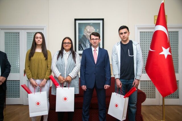 İngiltere'deki Türk okullarından mezun olan ve İngiltere'de yapılan üniversiteye giriş sınavında ülke çapında dereceye giren 3 öğrenciye, Türkiye'nin Londra Başkonsolosluğu tarafından tablet bilgisayar hediye edildi.