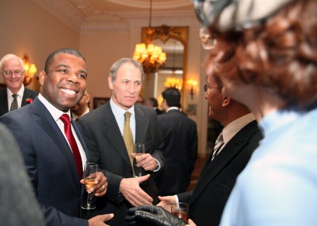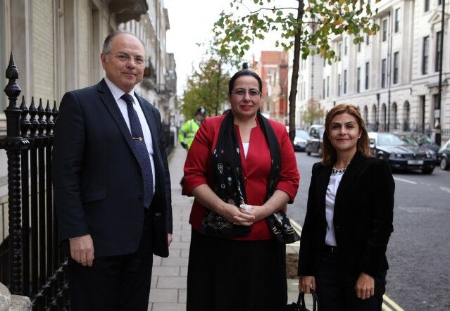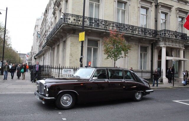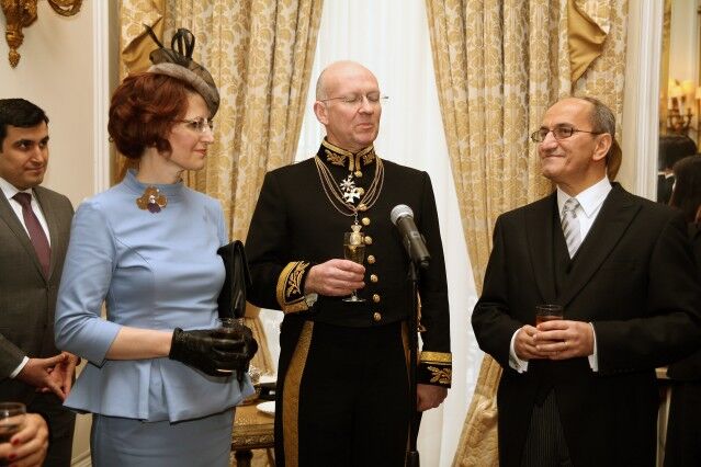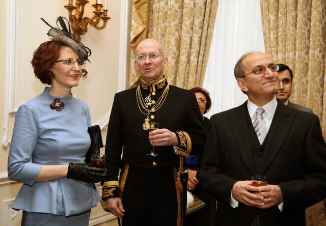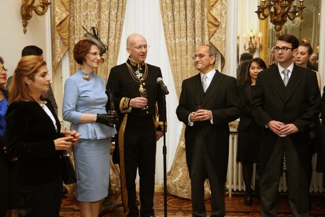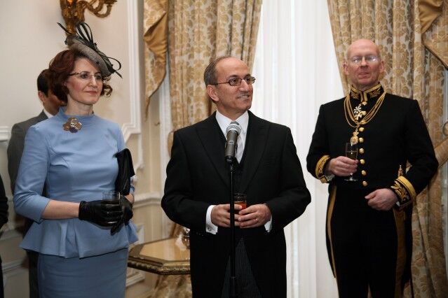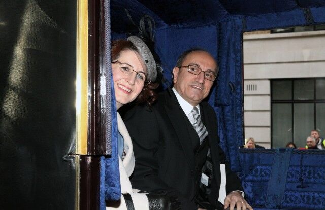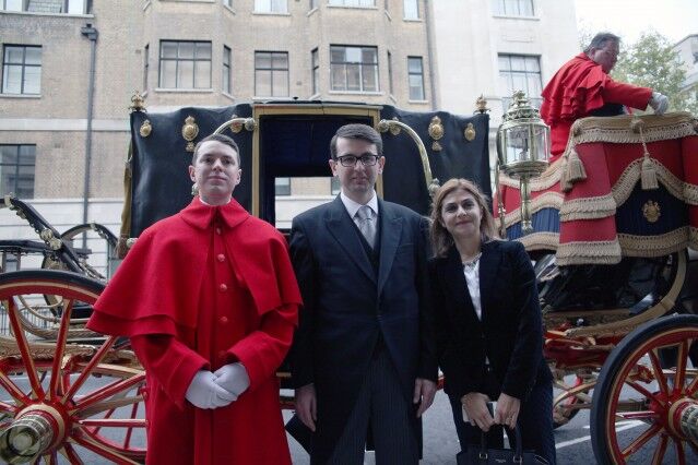 Buckingham Sarayı'na gidişlerinde Büyükelçi Bilgiç'e eşlik eden İngiltere Dışişleri Bakanlığı'nın Diplomatik Şefi Alistair Harrison.