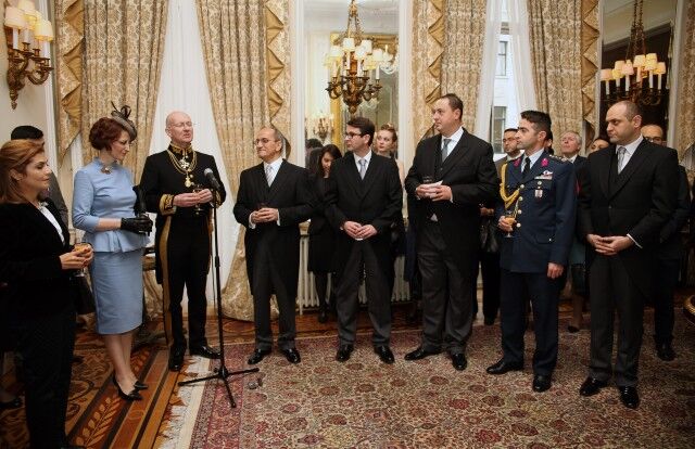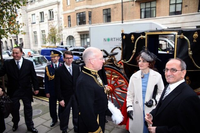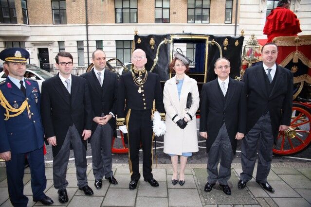 Kraliyet’e ait özel atlı arabayla Türkiye’nin Londra Büyükelçiliğinden alınan Büyükelçi Bilgiç ve Sefire Esra Bilgiç’e, Türkiye’nin Londra Başkonsolosu Emirhan Yorulmazlar, Büyükelçilik Müsteşarı, Elçi Müsteşar Fatih Ulusoy, Müsteşar Orçun Başaran ve Askeri Ateşe Hava Kurmay Albay Ömer Özkan eşlik etti.