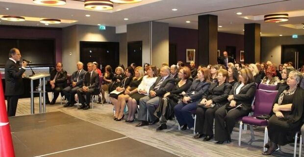 Double Tree by Hilton- West End otelinin konferans salonunda gerçekleştirilen tören, ÇAP Başkanı Servet Hassan’ın konukları saygı duruşu ve İstiklal Marşı’nı okumaya davet etmesiyle başladı. Double Tree by Hilton- West End otelinin konferans salonunda gerçekleştirilen tören, ÇAP Başkanı Servet Hassan’ın konukları saygı duruşu ve İstiklal Marşı’nı okumaya davet etmesiyle başladı.
