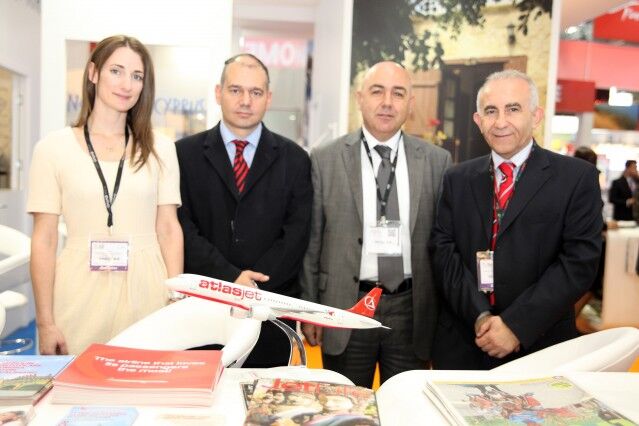 AtlasJet İngiltere Direktörü Mustafa Ebgü (sağda) ve mesai arkadaşları
