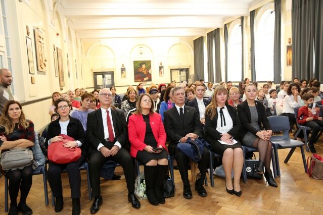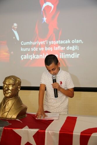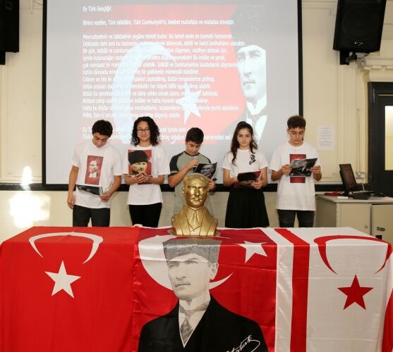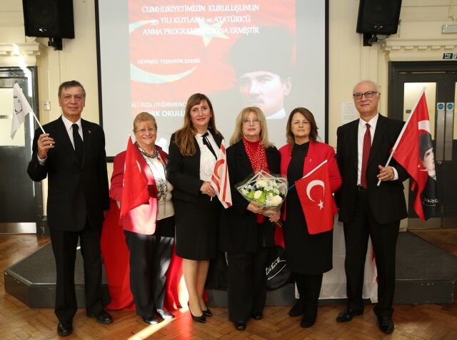 10 Kasım cumartesi günü okul salonunda düzenlenen kutmlama ve anma programına, KKTC Londra Konsolosu Ülkü Alemdar, ÇAP Başkanı Servet Hassan ve seçkin davetliler katıldı.