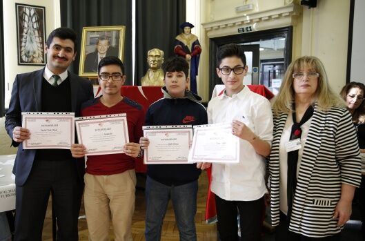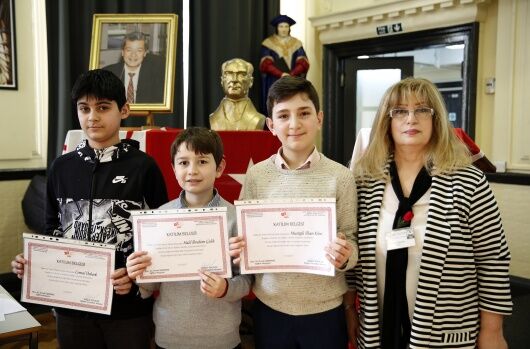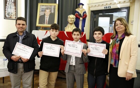 İngiltere Türk Aile Birliği, Ali Rıza Değirmencioğlu Türk Okulu Başkanı Sevtap Kemal, yarışmaya katılan tüm okul öğrencilerine katılım belgesi verirken, merhum eğitimci Ali Rıza Değirmencioğlu’nun eşi Pelin Değirmencioğlu da ilk üçe giren öğrencilerin plaket ile ödüllendirdi.
