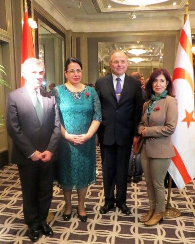 KKTC Londra Temsilcisi Oya Tuncalı ve Boranesler Meral Ece, Sahat Ludford, Lord Sharkey, kırmızı-beyaz 30’uncu yıl pastasını alkışlarla kestiler.