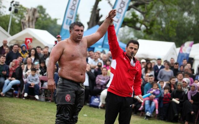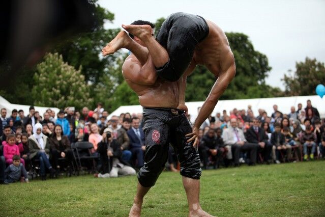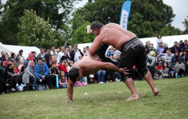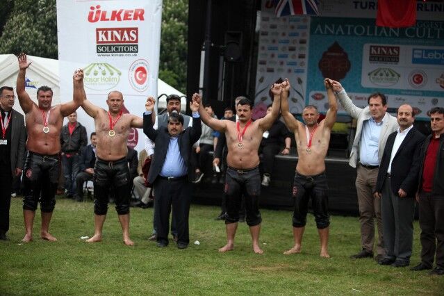 Londra’da dokuzuncusu düzenlyenen Anadolu Kültür Festivali kapsamında yapılan yağlı güreşlerde, rakibi Metin Kılıç’ı ‘Tren Oyunu’nda yenen Ahmet Okumuş birinci oldu.
