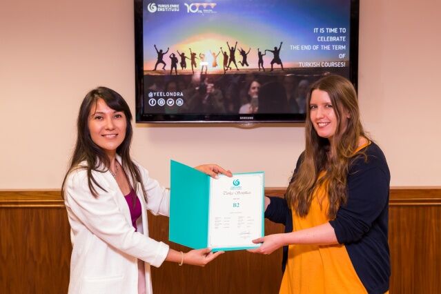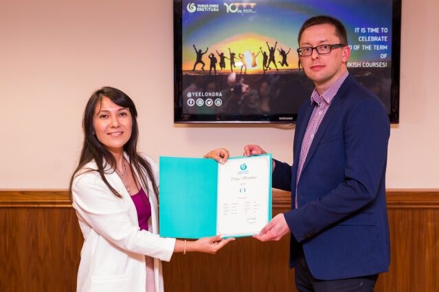 Londra Yunus Emre Enstitüsü 2018-2019 Türkçe öğretim yılını, yıl boyunca derslere katılan ve dönemlerini başarıyla tamamlayan öğrencilere sertifikalarının verildiği bir törenle kapattı.