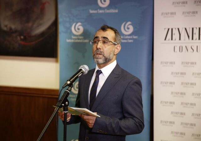 İnamoğlu ve Ateş’e ait olan ve kumaşa aktarma çalışmaları yapılan söz konusu tablolardan oluşan serginin açılışında konuşan,Yunus Emre Enstitüsü İngiltere Direktörü Dr. Mehmet Karakuş, böyle farklı bir projeye evsahipliği yapmaktan dolayı memnuniyet duyduğunu ifade etti.