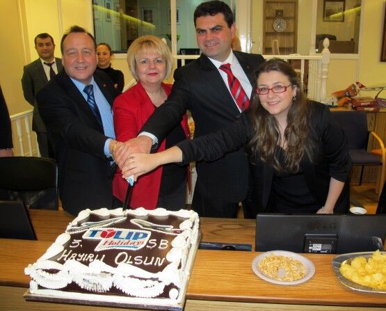 Sökmen ailesi ve THY Müdürü Nejdet Şark pastayı birlikte kestiler