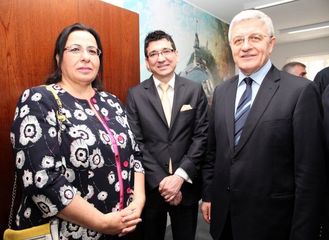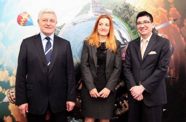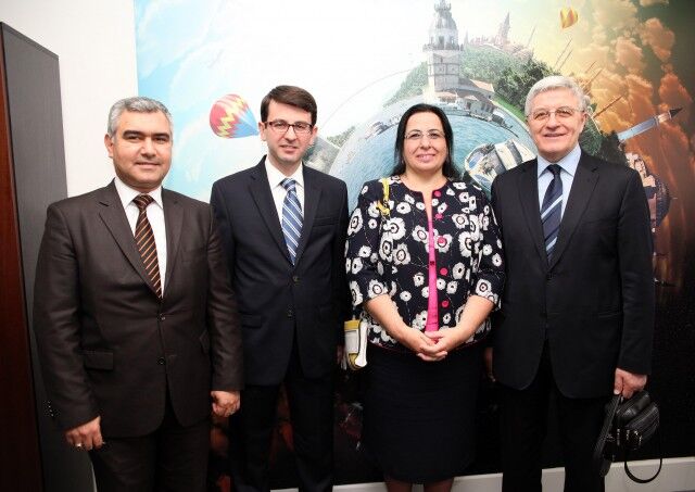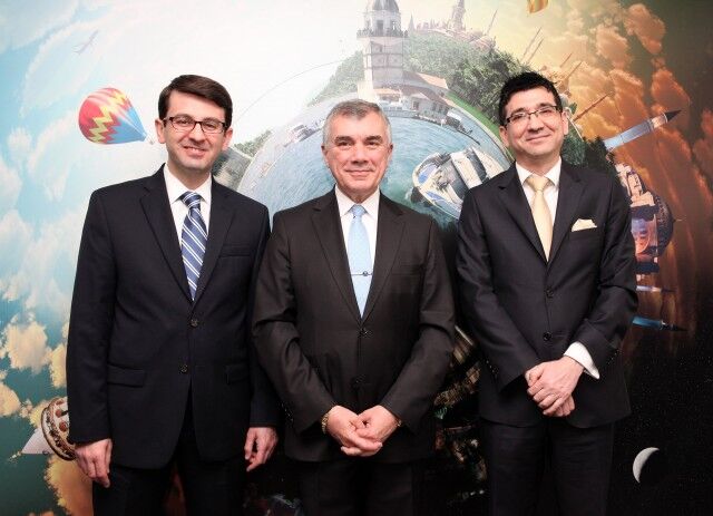 Büyükelçi Ünal Çeviköz (ortada) Başkonsolos Emirhan Yorulmazlar (solda) ve Turizm Ataşesi Ali Selçuk Can