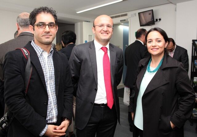 Türkiye'nin Londra Büyükelçiliği Basın Müşaviri Emin Tuğrul (ortada) Anadolu Ajansi Londra Temsilcisi Aslı Aral ve Yunus Kaymaz