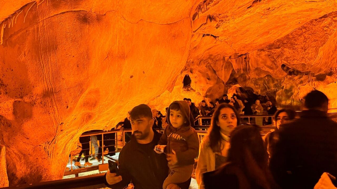 Doğal klima özelliği taşıyan mağara, hem sömestr tatili hem de hafta sonu olması nedeniyle ziyaretçi akınına uğradı.