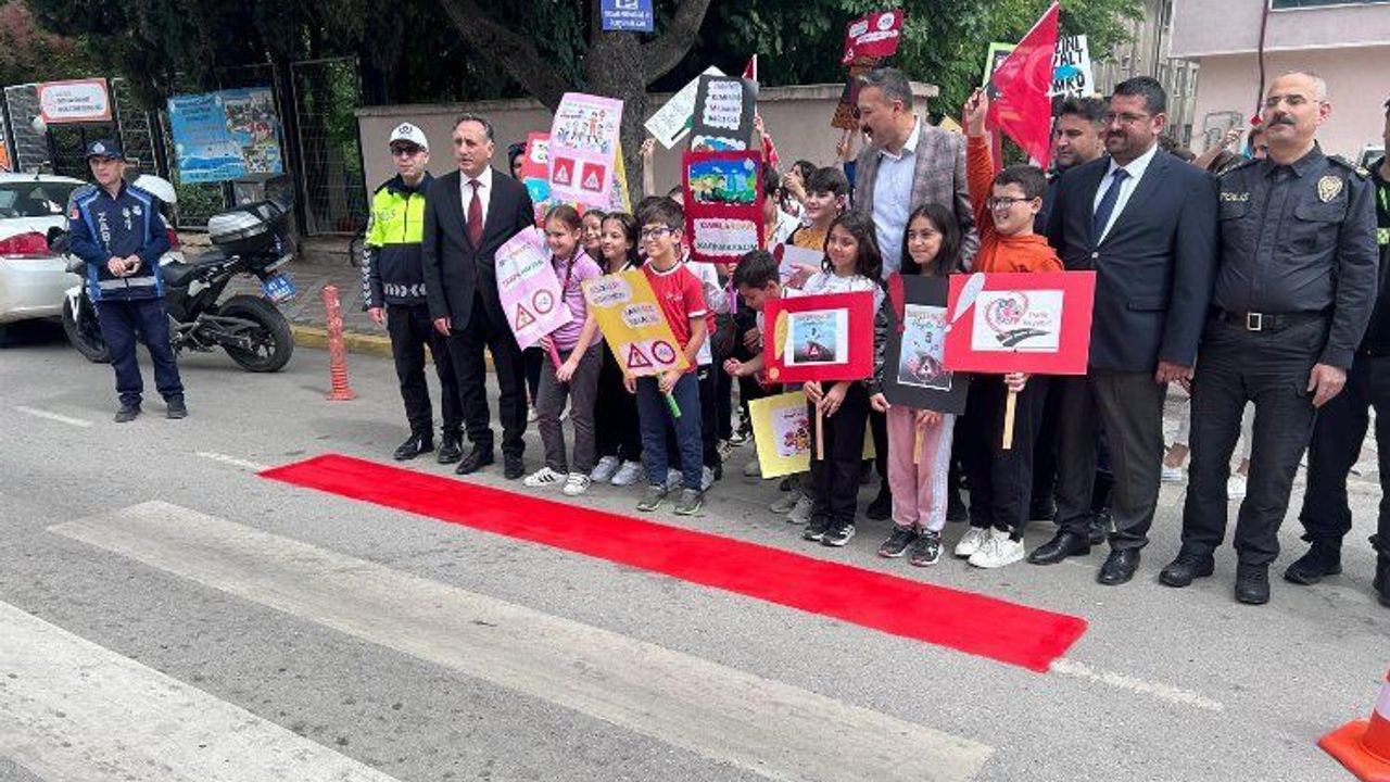 Gölcük’te İçişleri Bakanlığınca “Yayalara öncelik duruşu, hayata saygı duruşu” sloganıyla başlatılan kampanya çerçevesinde yaya geçitleri kırmızıya boyandı ve yoldan geçen araç sürücülerine uyarılarda bulundu.KOCAELİ (İGFA) - Gölcük’te Trafik Haftası etkinlikleri kapsamında anlamlı bir çalışma yapıldı. İçişleri Bakanlığınca “Yayalara öncelik duruşu, hayata saygı duruşu” sloganıyla başlatılan kampanya çerçevesinde yaya geçitleri kırmızıya boyanarak yoldan geçen araç sürücülerine uyarılarda bulunuldu. Piri Reis İlkokulu önünde düzenlenen etkinlikte öğrencilere trafik bilinci aşılamak, trafikte yaya önceliğine dikkati çekmek ve sürücü duyarlılığını artırmak hedeflendi.