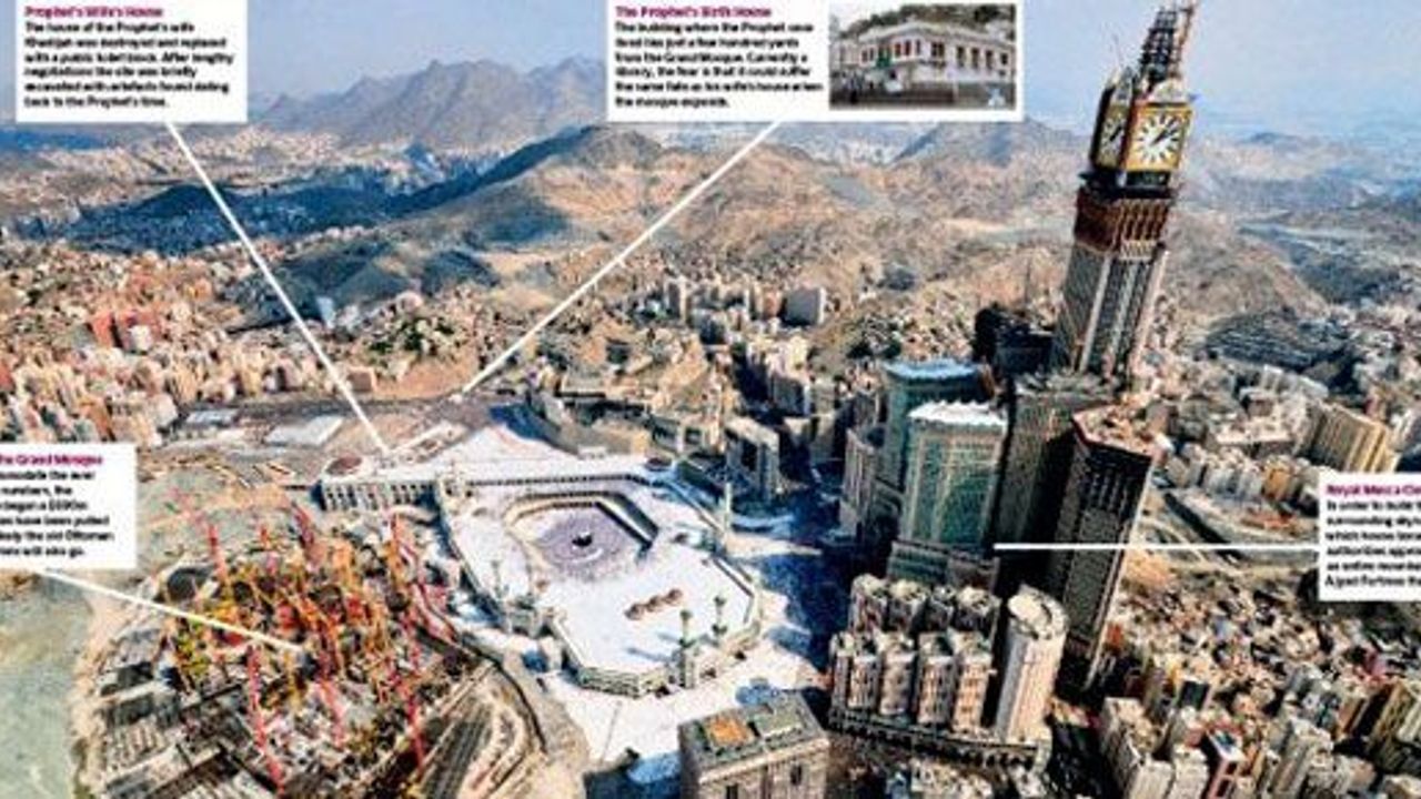 İslam dünyasının kalbi Kabe'nin 600 metre yakınında yükselen ve 30 kilometre mesafeden görülebilen, Londra'daki Big Ben'i bile gölgede bırakan dünyanın en büyük saat kulesi Abraj el-Beyt ve Kabe'nin etrafını çevreleyen lüks oteller ve alışveriş merkezlerinden kurulu gösterişli projeleri artık duymayan kalmadı.