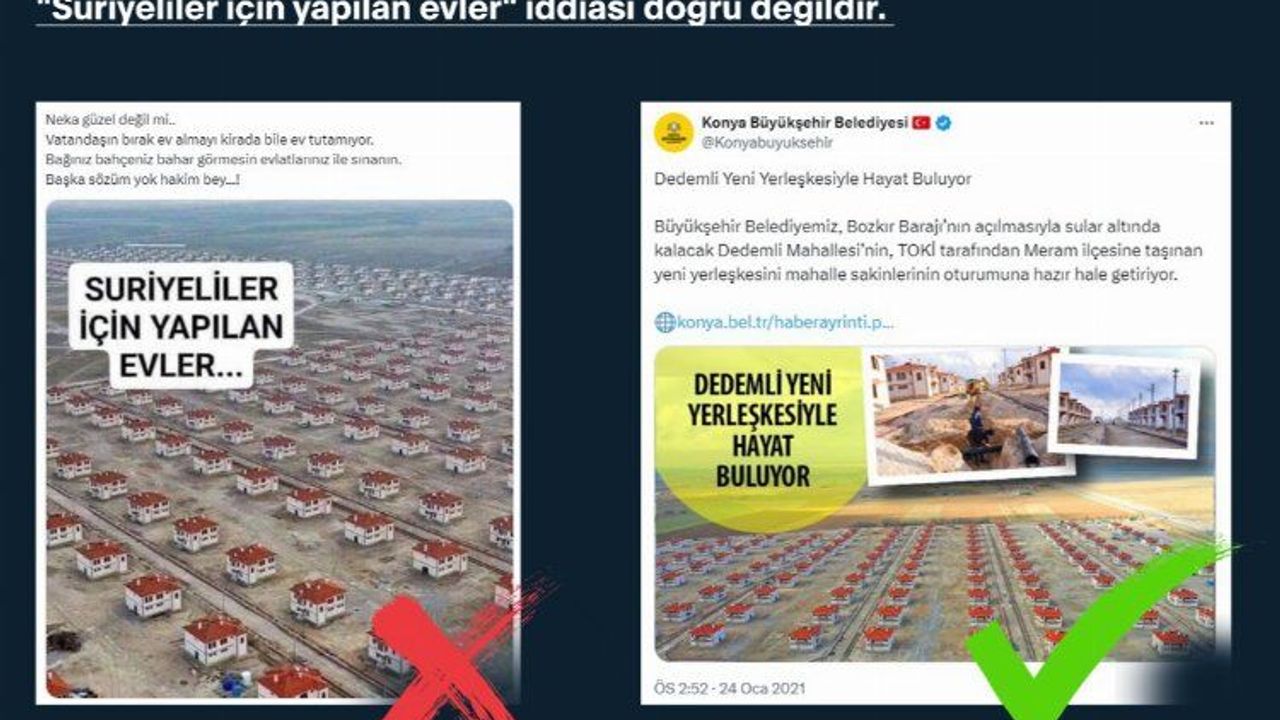 Konya Büyükşehir Belediyesi'nin ‘Dedemli Yeni Yerleşkesiyle Hayat Buluyor’ başlığıyla 24 Ocak 2021 tarihinde hem internet sitesinde hem resmi sosyal medya hesabında konuyla ilgili açıklamalarda bulunduğu tespit edildiğinin belirtildiği açıklamada, "Mahalle sakinleri için Meram ilçesi Çarıklar Mahallesi'nde TOKİ tarafından yapılan 428 adet konut 4 Eylül 2021'de çekilişle hak sahiplerine verilmiştir. Asılsız iddialara itibar etmeyiniz" ifadeleri yer aldı.