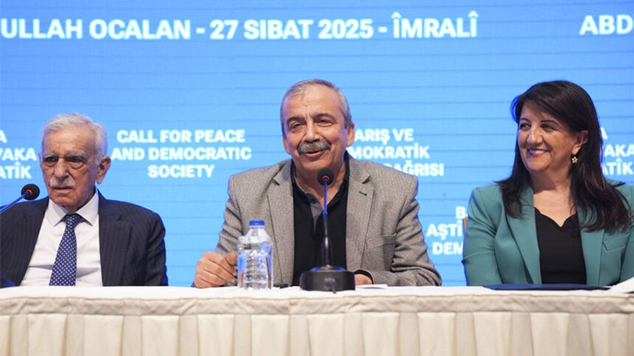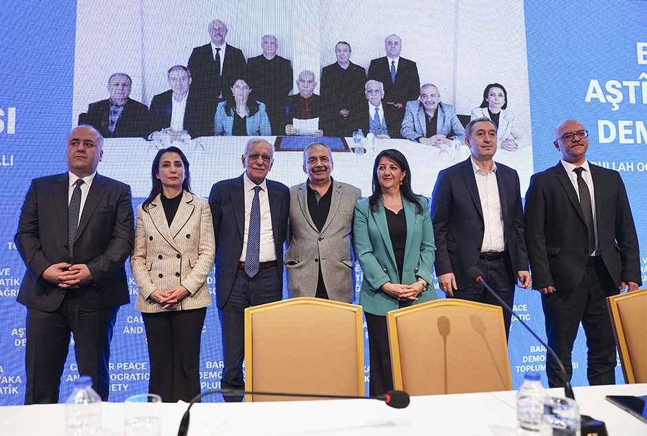 DEM Parti Eş Genel Başkanları Tulay Hatımoğulları Oruç ve Tuncer Bakırhan, İstanbul Milletvekilleri Sırrı Süreyya Önder ve Cengiz Çiçek, Van Milletvekili Pervin Buldan, eski Mardin Büyükşehir Belediye Başkanı Ahmet Türk ve Öcalan'ın avukatı Faik Özgür Erol'un yer aldığı heyet, İmralı Adası'nda sabah saatlerinde Öcalan ile yaptıkları görüşmenin ardından İstanbul'da bir otelde basın toplantısı düzenledi.