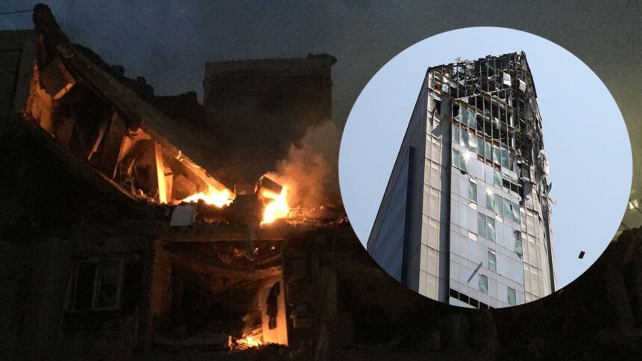 Görüntülerde çok katlı binanın saldırı sonrasında ağır hasar aldığı görüldü.