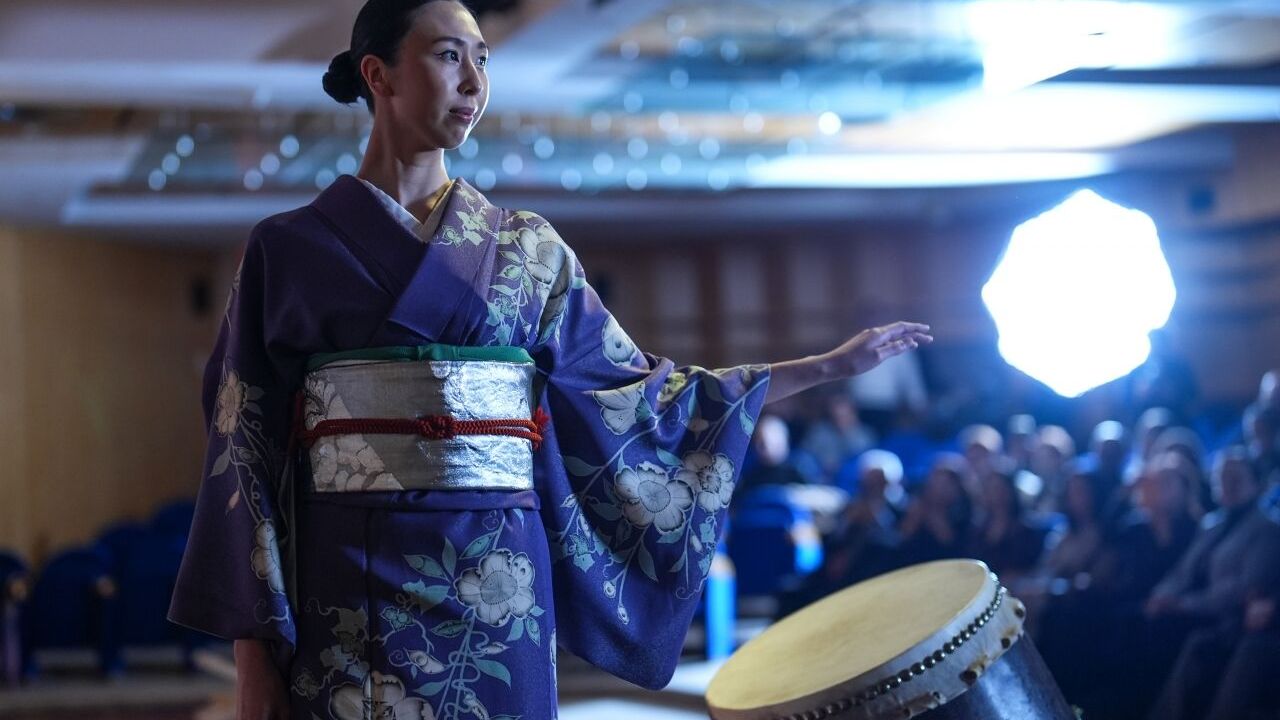 Etkinlikte, Kyogen tiyatro sanatçısı İppei Shigeyama tarafından geleneksel Japon davulu Wadaiko performansı sergilendi.
