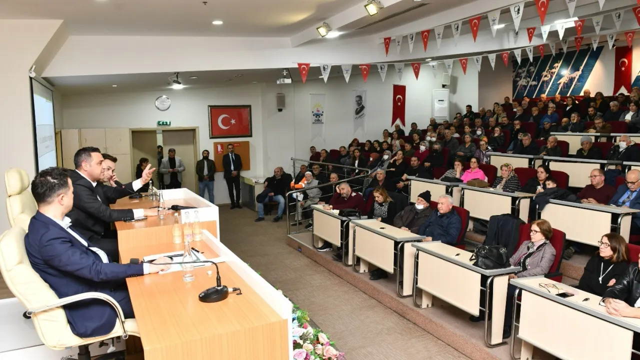 İzmir Çiğli Belediyesi tarafından, Köyiçi Mahallesi’nde başlatılacak kentsel dönüşüm çalışması öncesinde Belediye Başkanı Onur Emrah Yıldız mahalle sakinleriyle bilgilendirme toplantısında bir araya geldi.İZMİR (İGFA) - İzmir Çiğli Belediyesi’nin ev sahipliğinde Meclis Salonu’nda düzenlenen toplantıya Çiğli Belediye Başkanı Onur Emrah Yıldız’ın yanı sıra başkan yardımcıları, birim müdürleri, meclis üyeleri, Köyiçi Mahalle Muhtarı Ahmet Çelik ve çok sayıda Köyiçi Mahallesi sakini katılım gösterdi. Başkan Yıldız, toplantıya katılan vatandaşların kentsel dönüşüm planlamasıyla ilgili sorularını tek tek dinleyip, cevapladı.