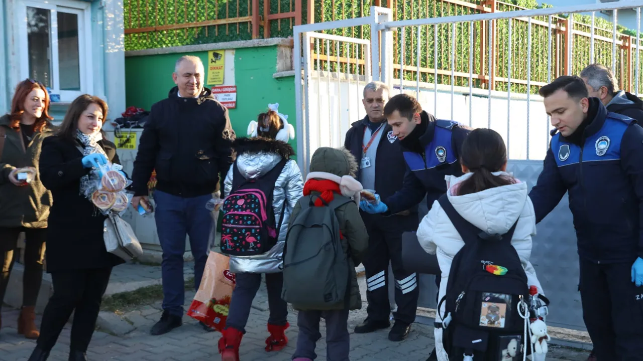 İzmir Güzelbahçe Belediyesi’nin devlet okullarına süt, simit, meyve ve kuruyemişdağıtımına büro personeli, müdürler ve amirlerde destek verdi.İZMİR (İGFA) - İzmir Güzelbahçe Belediyesi’nin, kasım ayında başlattığı okullara süt simit dağıtım projesinden 2 binden fazla öğrenci faydalanıyor.