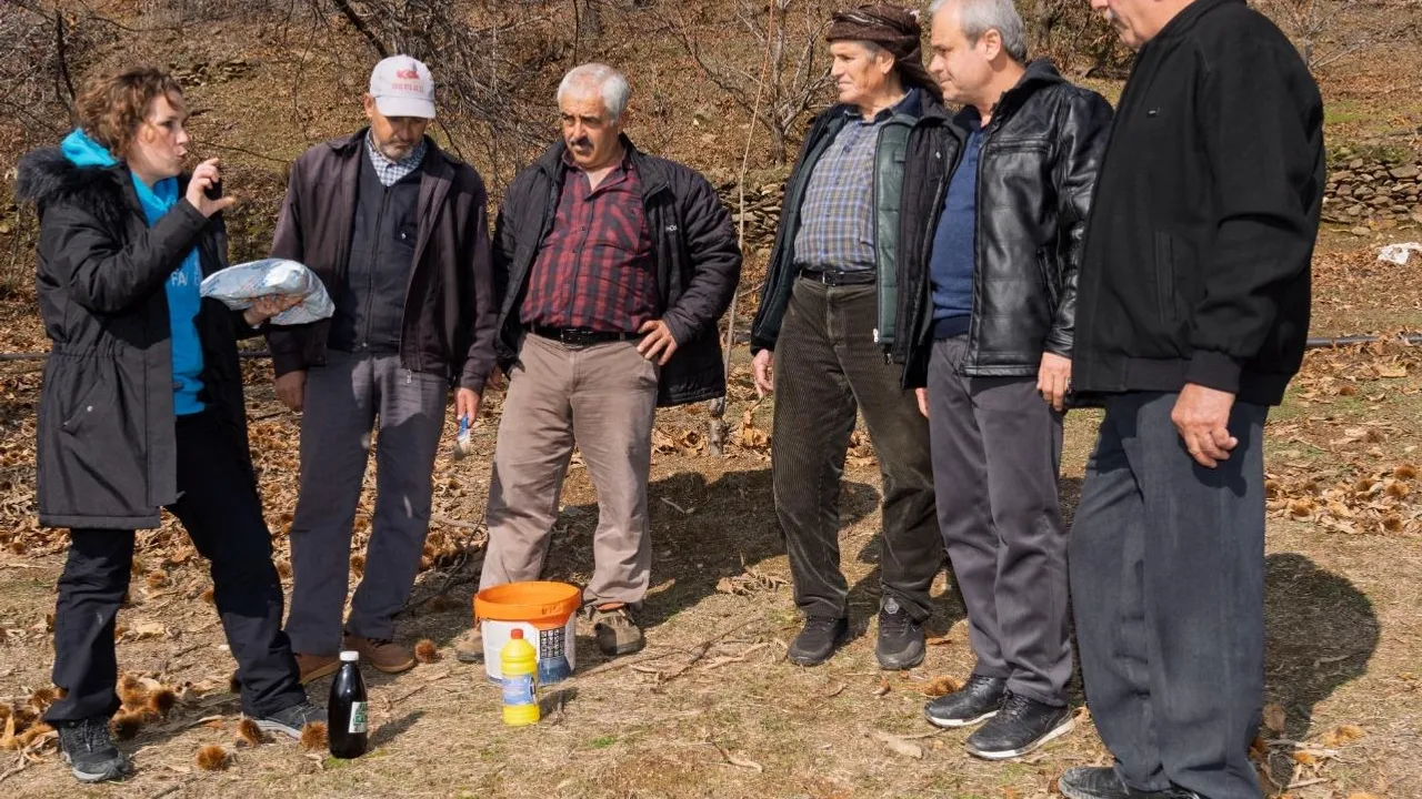 Öncelikli hedeflerinin hastalığın yayılmasını engellemek olduğunu belirten Elvan Hatipoğlu, “Çünkü bu bir mantar hastalığı. Bu mantar sporları uygun ortamlar olduğunda çok kolay yayılabiliyor. Önceliğimiz bu hastalığın yayılmasını engellemek. Üreticilerimiz de mücadeleyi öğrendi, nasıl yapması gerektiğini benimsedi. Kestane hem yüksek yerlerde, hem yamaç yerlerde yetişiyor. Çok da değerli bir ürün. Rekoltede düşüşler başlamıştı. Şimdi bu uygulamayı yaptığımız alanlar kendini toparlamaya başladı. Tabii ki kestane üretimine çok büyük bir katkısı olacak” ifadelerini kullandı.