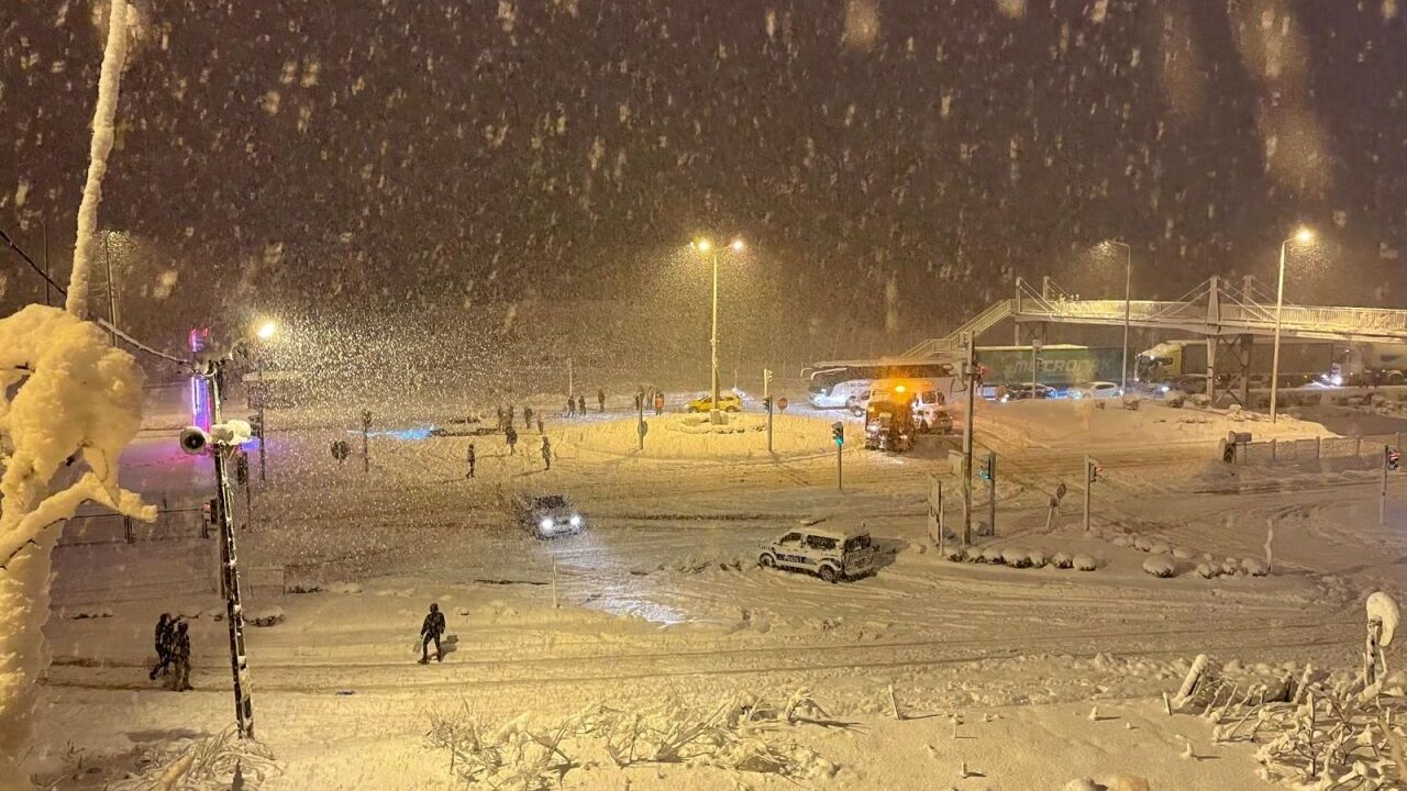 Akşam saatlerinde başlayan yoğun kar yağışı, Karadeniz Sahil Yolu'nda etkili oldu.