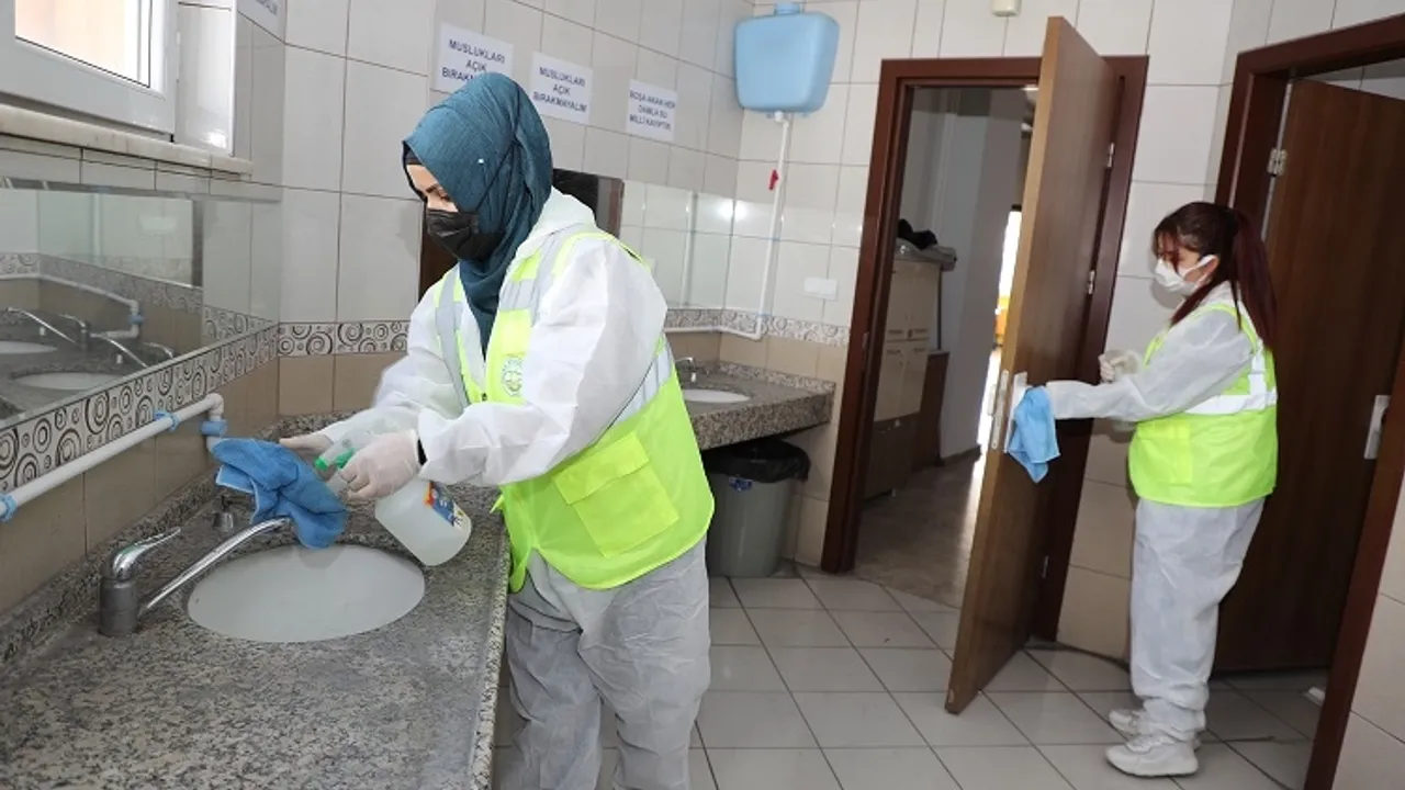 İki ekip halinde yürütülen çalışmalarda bahçeler başta olmak üzere kazan daireleri de dahil edilerek lavabolar, tuvaletler, kapılar, koridorlar ve sınıflar ile okulun her noktası temizlenip dezenfekte ediliyor.