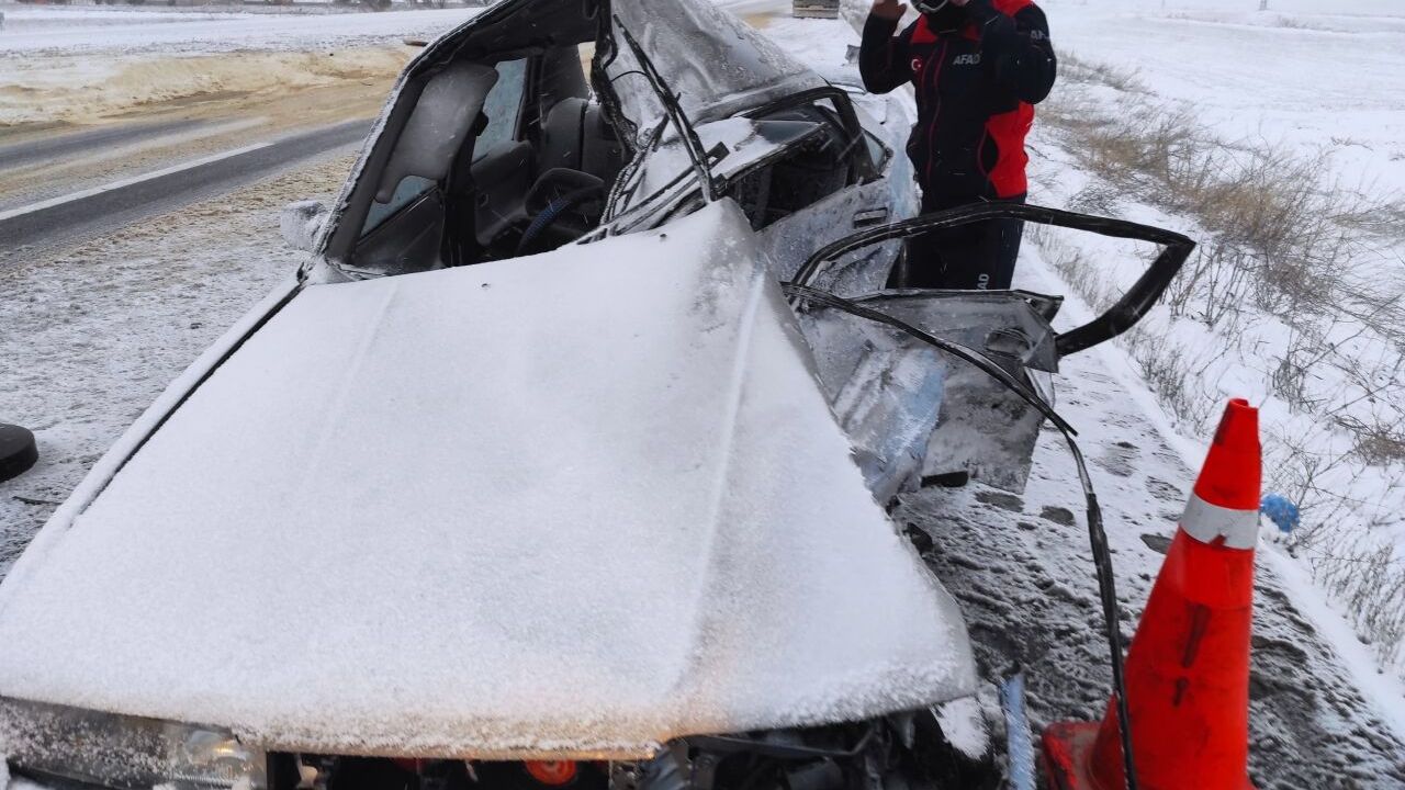Çarpışmanın etkisiyle araçta sıkışan sürücü ve eşi Fatma Karataş (60) ekiplerin çalışmasıyla çıkarıldı.