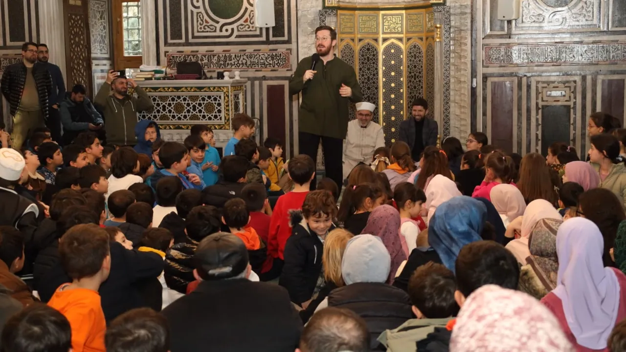 Kocaeli Büyükşehir Belediyesi’nin “Babamla İlk Saftayım” etkinliğinde Gebze Çoban Mustafa Paşa Camii’nde çocuklar ve babalarıyla buluşan ünlü YouTuber Sertaç Abi, cami adabı ve ibadetin önemini onlara eğlenceli bir şekilde anlattı.KOCAELİ (İGFA) - Ünlü YouTuber Sertaç Abi ile “Babamla İlk Saftayım” etkinliğinde camide buluşan çocuklar cami adabı ve ibadetin önemini eğlenceli bir şekilde öğrendi.