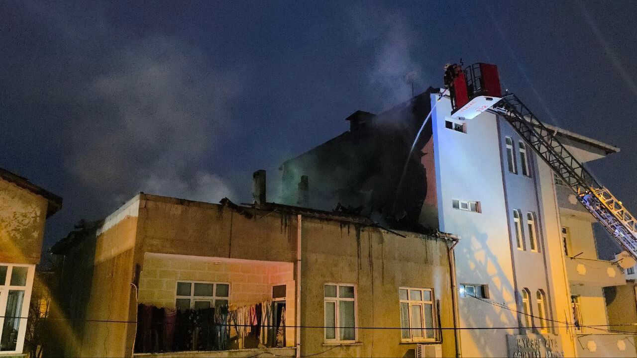 Kısa sürede büyüyen alevler, bitişikteki 3 katlı binanın çatısına da sıçradı.