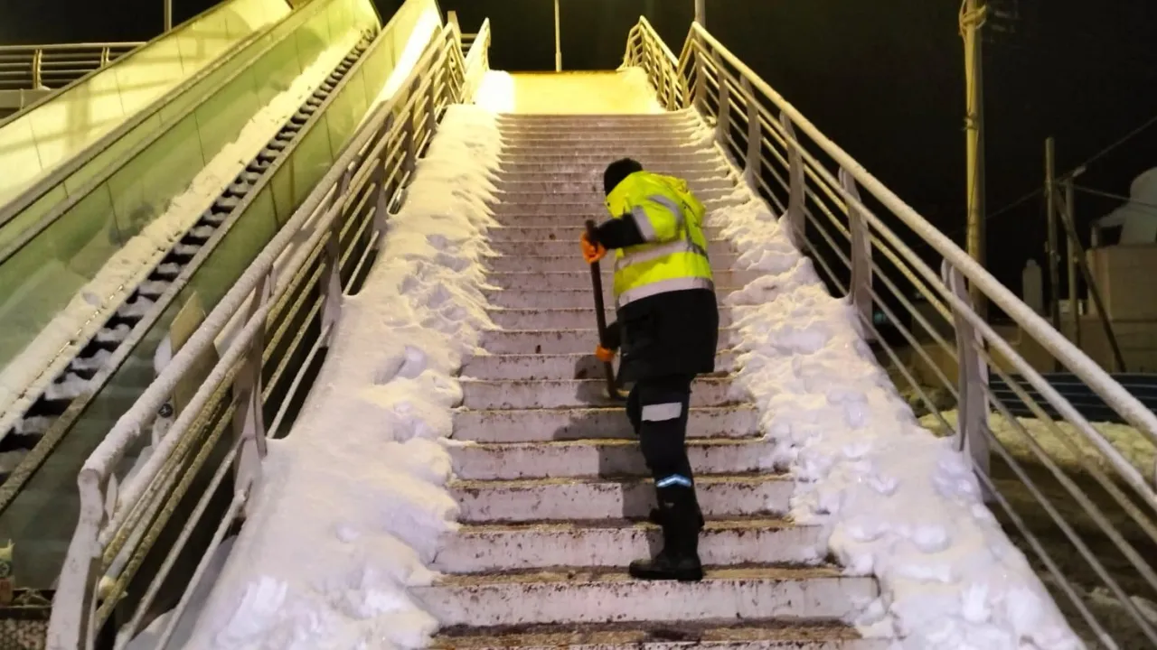 Karla Mücadele Timi, bugün gerçekleştirilecek olan Milli Savunma Üniversitesi (MSÜ) Askeri Aday Belirleme Sınavı ve İçişleri Bakanlığı Kaymakam Adaylığı Giriş Sınavı’nın yapılacağı okulların önlerinde, üst geçitler ve merdivenlerde kar temizleme, buz çözücü solüsyon ve tuzlama çalışmalarını gerçekleştirdi. Sabaha kadar çalışan ekipler, yolları açık tutarak adayların sınav merkezlerine güvenli bir şekilde ulaşmalarını sağladı.