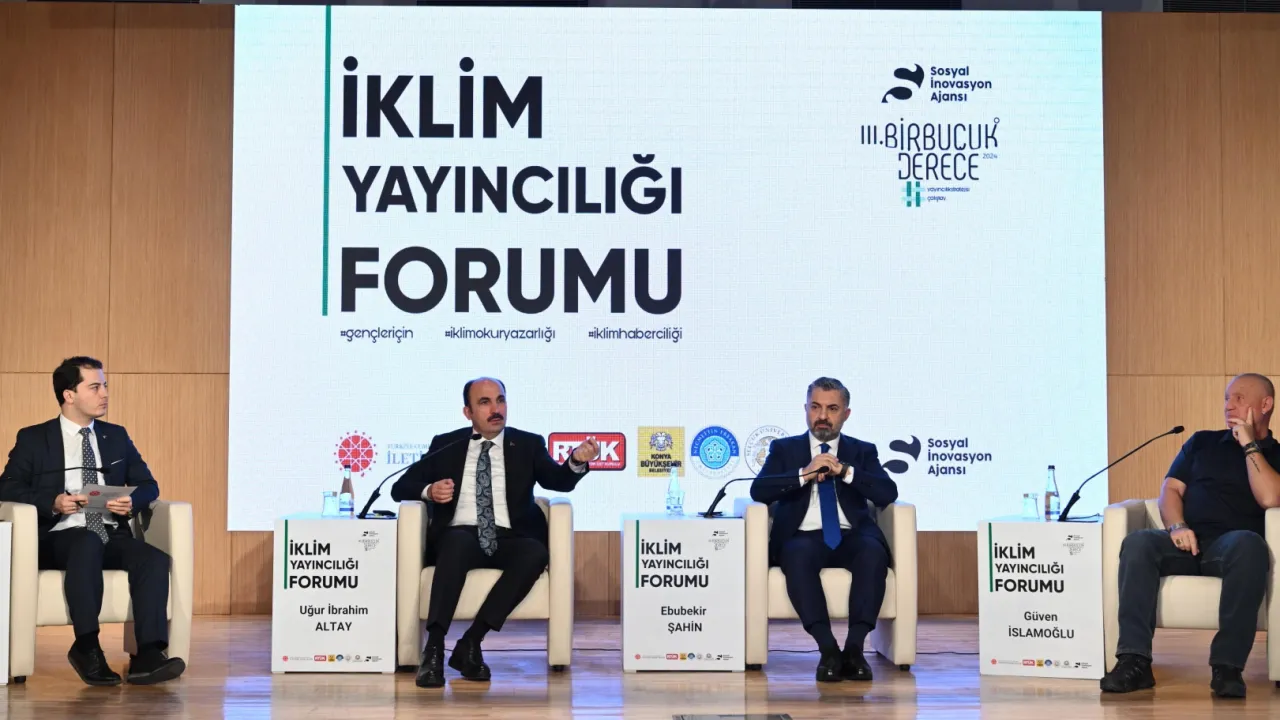 Cumhurbaşkanlığı İletişim Başkanlığı, RTÜK, Konya Büyükşehir Belediyesi, Necmettin Erbakan Üniversitesi, Selçuk Üniversitesi iş birliğiyle, Sosyal İnovasyon Ajansı yürütücülüğünde hayata geçirilen 1.5 Derece-Gençler İçin İklim Okuryazarlığı ve Haberciliği programı kapsamında 3. İklim Yayıncılığı Forumu düzenlendiKONYA (İGFA) - Cumhurbaşkanlığı İletişim Başkanlığı, Radyo ve Televizyon Üst Kurulu (RTÜK), Konya Büyükşehir Belediyesi, Necmettin Erbakan Üniversitesi, Selçuk Üniversitesi iş birliğiyle 1.5 Derece-Gençler İçin İklim Okuryazarlığı ve Haberciliği programı kapsamında 3. İklim Yayıncılığı Forumu yapıldı.