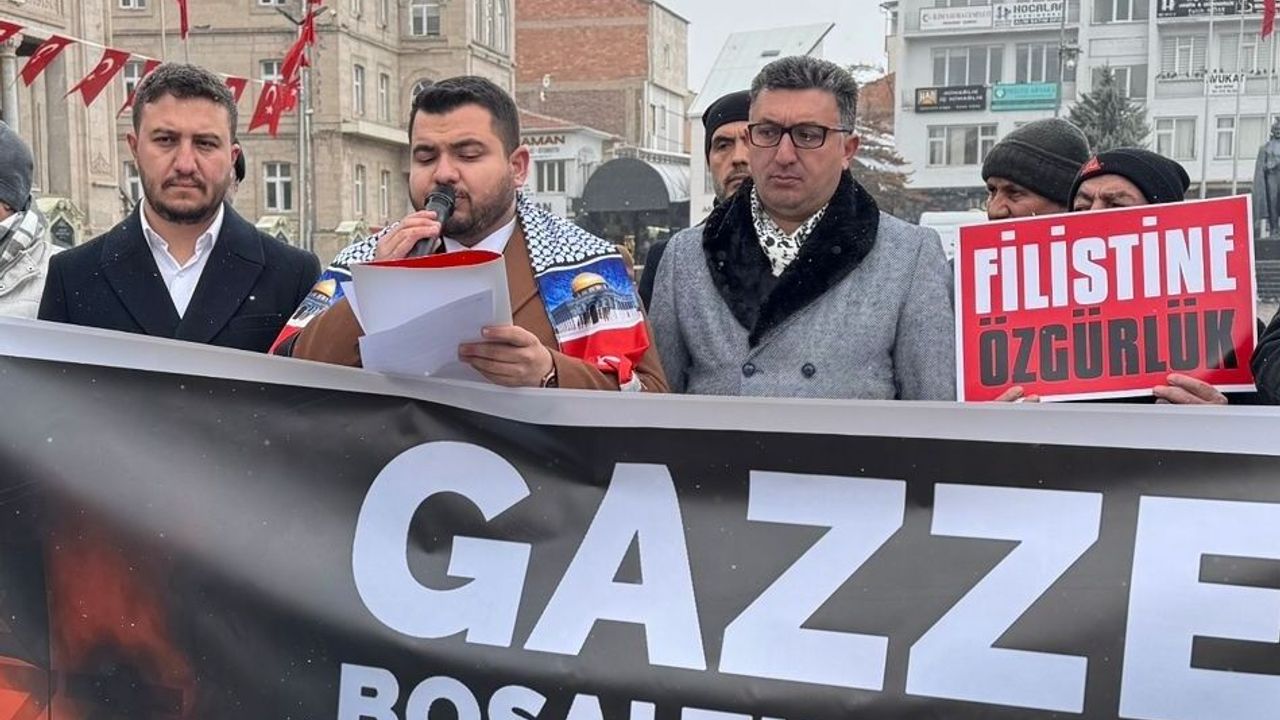 Partinin İl Başkanı Mehmet Demirel, burada yaptığı açıklamada, İsrail'in kadın, çocuk, yaşlı demeden tüm uluslararası hukuku yok sayarak 50 binin üzerinde Gazzeli'yi katlettiğini söyledi.