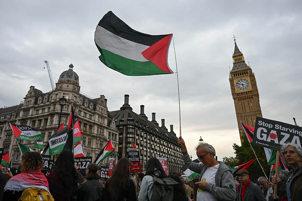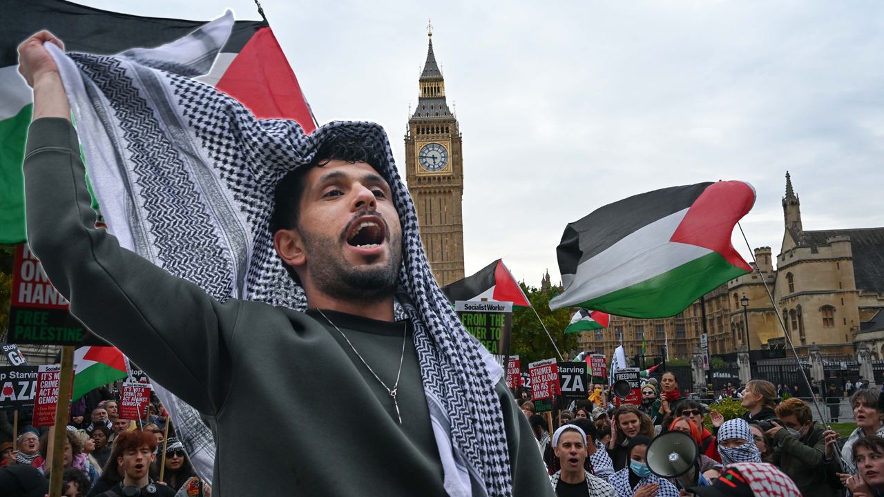 Londra'daki Parlamento Meydanı'nda toplanan yüzlerce kişi, İsrail'in Gazze'ye insani yardım götüren ve Gazze ablukasını kırmayı hedefleyen Küresel Sumud Filosu'ndaki gemilere saldırarak yasa dışı şekilde el koymasına tepki gösterdi.