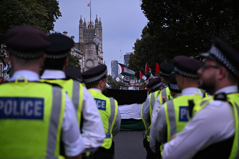 Londra Metropolitan Polisi, eylemcilerin iki taraftan önünü kestiği noktada bazı protestocuları gözaltına aldı. Kent genelinde iki noktada daha İsrail'in Küresel Sumud Filosu saldırısı protesto edildi.