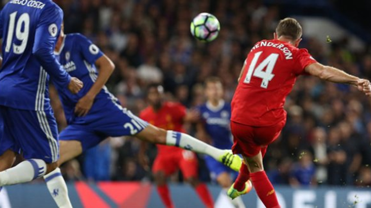 36. dakikada yine sol kanattan gelişen Liverpool atağında Chelsea savunmasının uzaklaştırmaya çalıştığı topu ceza alanı önünde kontrol eden Jordan Henderson'un, yaklaşık 30 metreden şık şutunda meşin yuvarlak kaleci Thibaut Courtois'i aşarak konuk ekibe iki farklı üstünlüğü getirdi. "Kırmızılar", Alman teknik adam Jürgen Klopp'un göreve gelmesinden bu yana ligde ceza alanı dışından 15. kez skor üretti.