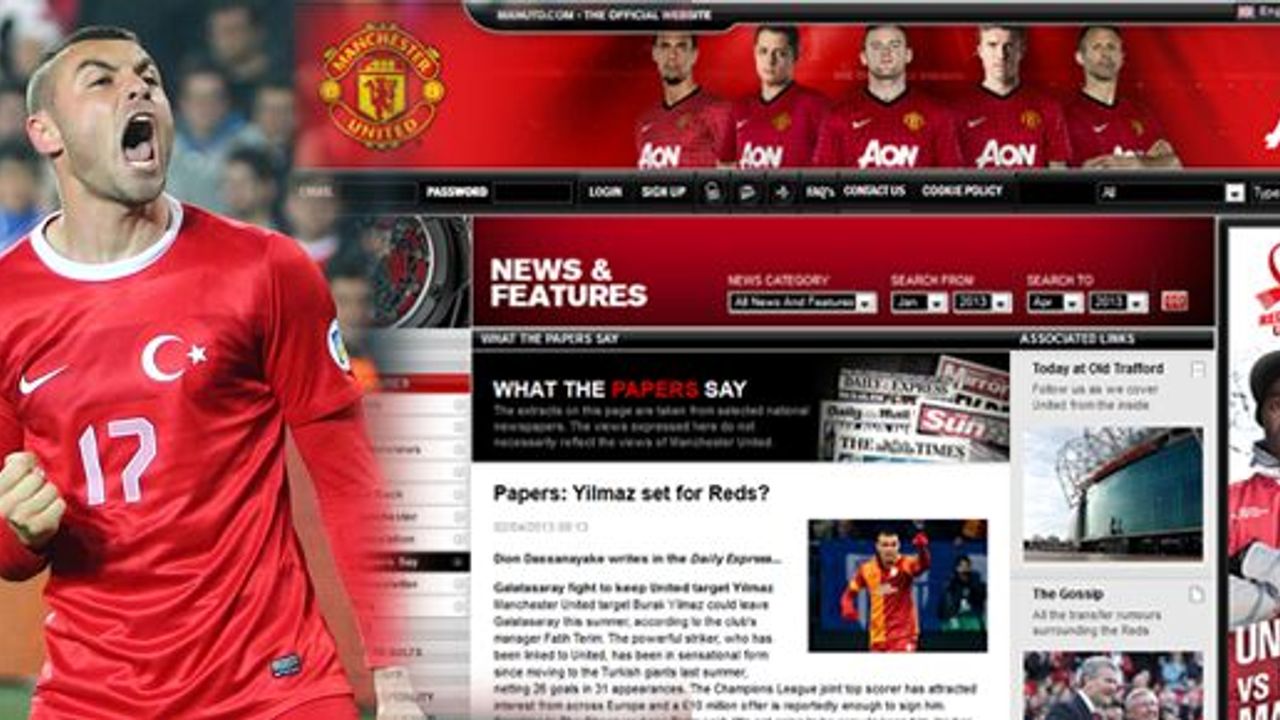Manchester United'ın resmi internet sitesinde ana sayfada Burak Yılmaz ile ilgili yer alan haberler şöyle: