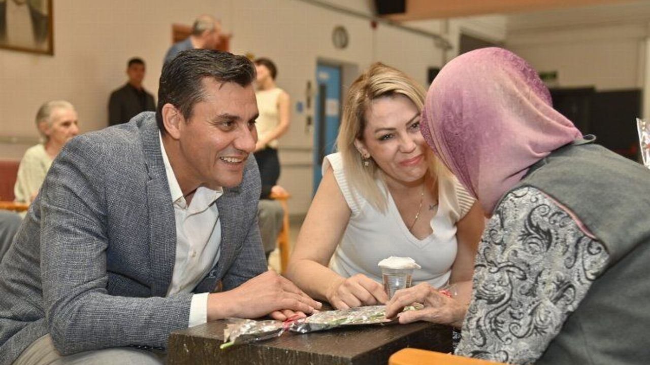 Huzurevinde kalan kadın sakinlerin tek tek elini öperek çiçek takdim eden Başkan Zeyrek ve eşi Nurcan Zeyrek, huzurevi sakinleriyle bir süre sohbet etti.