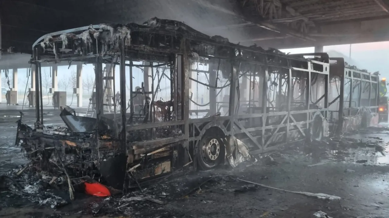 Manisa Şehirler Arası Otobüs Terminali’nde bir elektrikli otobüste çıkan yangın sonucu, araç ve şarj istasyonu kullanılamaz hale geldi. İtfaiye ekiplerinin zamanında müdahalesi ile yangın diğer otobüslere sıçramadan söndürüldü. Büyükşehir Belediyesi'nden yapılan açıklamada, otobüs yangınının ulaşıma etkisinin olmayacağı bildirildi.MANİSA (İGFA) - Manisa Şehirler Arası Otobüs Terminali’nde bulunan ve yüksek voltaj grubu olarak adlandırılan ünitesinde patlama meydana gelen 45 E 3311 plakalı otobüs alev aldı. Yangına ilk müdahale 6 personel tarafından yangın söndürme tüpleriyle yapıldı. Kısa sürede terminale ulaşan itfaiye ekiplerinin müdahalesi ile otobüs söndürüldü.