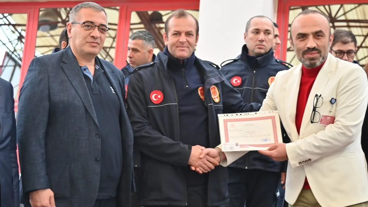 Eğitimleri tamamlayan itfaiyeciler için düzenlenen törende sertifikaları teslim edildi. Törene, Manisa Büyükşehir Belediyesi Genel Sekreter Yardımcısı Oğuz Murat Pınar, İnsan Kaynakları ve Eğitim Daire Başkanı Fatma Bozan, İtfaiye Daire Başkanı Gürhan İnal, İl Sağlık Müdürü Uzman Doktor Erol Karaca, Sağlık Hizmetleri Başkan Yardımcısı Doktor Barış Uğur Oğraşangil, İl İlkyardım Eğitimleri Sorumlusu Serdar Kemal Güleç, İSG Şube Müdürü Fulden Özdemir ve eğitimleri tamamlayan itfaiyeciler katıldı.