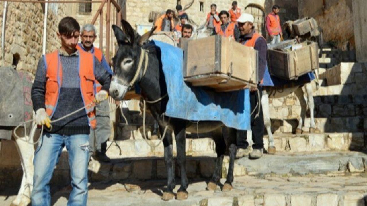 Artuklu Belediyesi, kentte dar sokaklarda çöp toplamada kullanılan eşeklerle ilgili açıklama yaptı.Şehmus EDİS / MARDİN (İGFA) - Artuklu Belediyesi, şehrin dar sokaklarında çöp toplamasında kullanılan eşeklerle ilgili sosyal medya platformları uzerinden başlatılan imza kampanyası üzerine açıklama yaptı. Hayvanseverlerin yıllardır kaldırılmasını istediği çöp toplama eşekleri ile ilgili belediyeden yapılan açıklamada eşeklerle çöp toplanmasına son verileceği mesajı verildi.