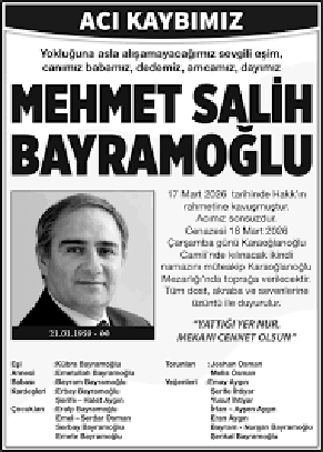 Kıbrıslı Türk iş insanı ve Kıbrıs Türk milli davasının Avrupa’daki savunucularından biri olarak tanınan Mehmet Salih Bayramoğlu, 7 Mart Salı sabahı memleketi KKTC'de hayatını kaybetti. Aslen Limasollu olan ve uzun yıllardır İngiltere’de yaşamını sürdüren Bayramoğlu’nun vefatı, ailesi, yakın çevresi ve Kıbrıs Türk toplumu arasında derin üzüntüye neden oldu.