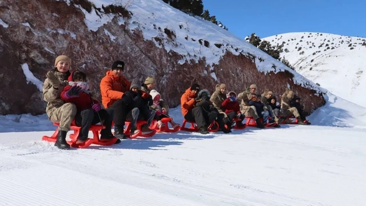 Erzincan İl Jandarma Komutanlığı Aile İçi Şiddetle Mücadele ve Çocuk Kısım Amirliği tarafından düzenlenen etkinlikte çocuklar Ergan Dağında kızak keyfi yaşadı.ANKARA (İGFA) - Merkez İlçe Jandarma Komutanlığı sorumluluk bölgesinde bulunan Büyükçakırman İlkokulu ve Anaokulunda eğitim gören 17 öğrencinin katılımıyla Ergan Dağı’nda kızak faaliyeti gerçekleştirildi. Etkinlikte çocuklar jandarma ekipleriyle birlikte doyasıya eğlendi. Jandarma ekipleri kızak keyfi sonrası öğrencilerle birlikte yemek yiyerek hediyelerini dağıttılar.