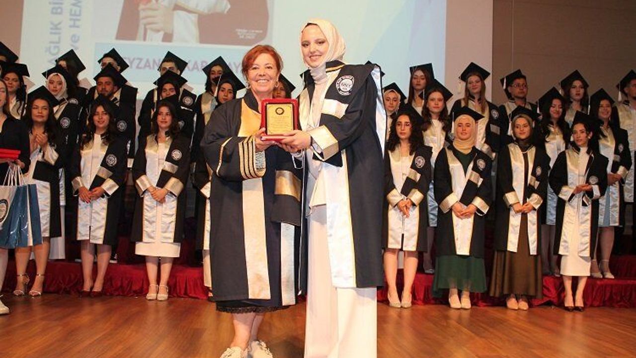 Hemşirelik Bölümü Mezuniyet Töreninde Fakülte ve Hemşirelik Bölümü Birincisi Beyzanur Karabayır, Fizyoterapi ve Rehabilitasyon Bölümü Mezuniyet Töreninde Bölüm Birincisi Merve Durmuş, Beslenme ve Diyetetik Bölümü Mezuniyet Töreninde Bölüm Birincisi Nurcan Ünal mezun öğrenciler adına birer konuşma yaptı. Beyzanur Karabayır ayrıca mezuniyet kütüğüne isminin yazılı olduğu plakayı çaktı. Daha sonra üç bölüm öğretim üyeleri tarafından öğrencilere belgeleri verildi.