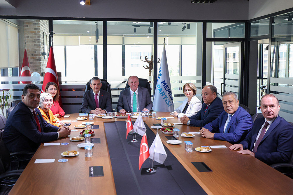 Özel, beraberindeki heyetle Memleket Partisi Genel Başkanı Muharrem İnce'yi parti genel merkezinde ziyaret etti.