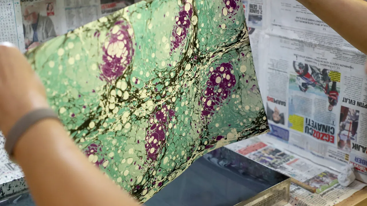 Zorlu ve emek isteyen bir geleneksel sanat olan ebru derslerinde kursiyerler, geleneksel değerlerle geleceği birleştiren benzersiz bağın bir parçası oluyor.
