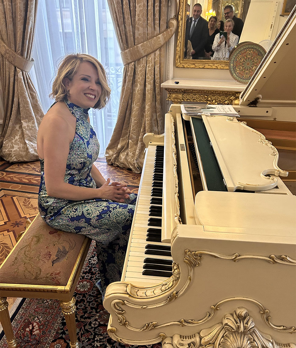 Büyükelçi Osman Koray Ertaş, konser öncesi yaptığı konuşmada ünlü piyanisti ağırlamaktan büyük memmnuniyet duyduklarını dile getirdi ve Rüya Taner’i alkışlarla piyanoya davet etti.