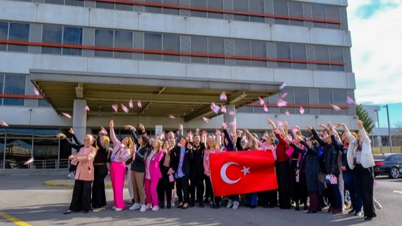 Dünya Havacı Kadınlar Haftası programı, ISG Airport Otel önünde pembe renkli kağıt uçakların uçurulmasıyla sona erdi.