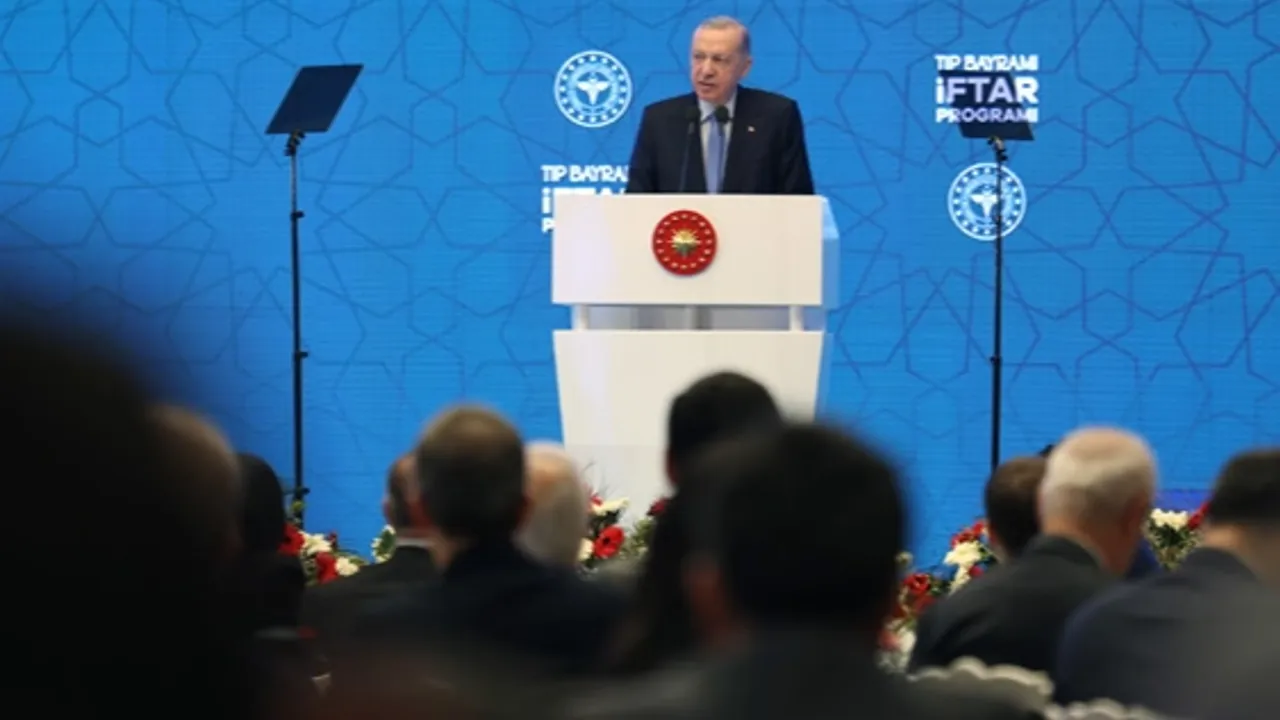 Sağlık camiasının beklediği önemli bir müjdeyi sağlık çalışanları ve aziz milletiyle paylaşmak istediğini söyleyen Cumhurbaşkanı Erdoğan, "İnşallah 2025 senesi içinde sağlık teşkilatımızı, istihdam edeceğimiz 37 bin hekim dışı yeni personelle daha da güçlendireceğiz. Hayırlı uğurlu olsun diyorum. Bu düşüncelerle, hekimlerimiz başta olmak üzere ülkemizin dört bir ucunda sabır, şefkat ve metanetle insanımıza hizmet etmeyi görev bilen tüm sağlık çalışanlarımızın 14 Mart Tıp Bayramı'nı tekrar tebrik ediyorum" diye konuştu.