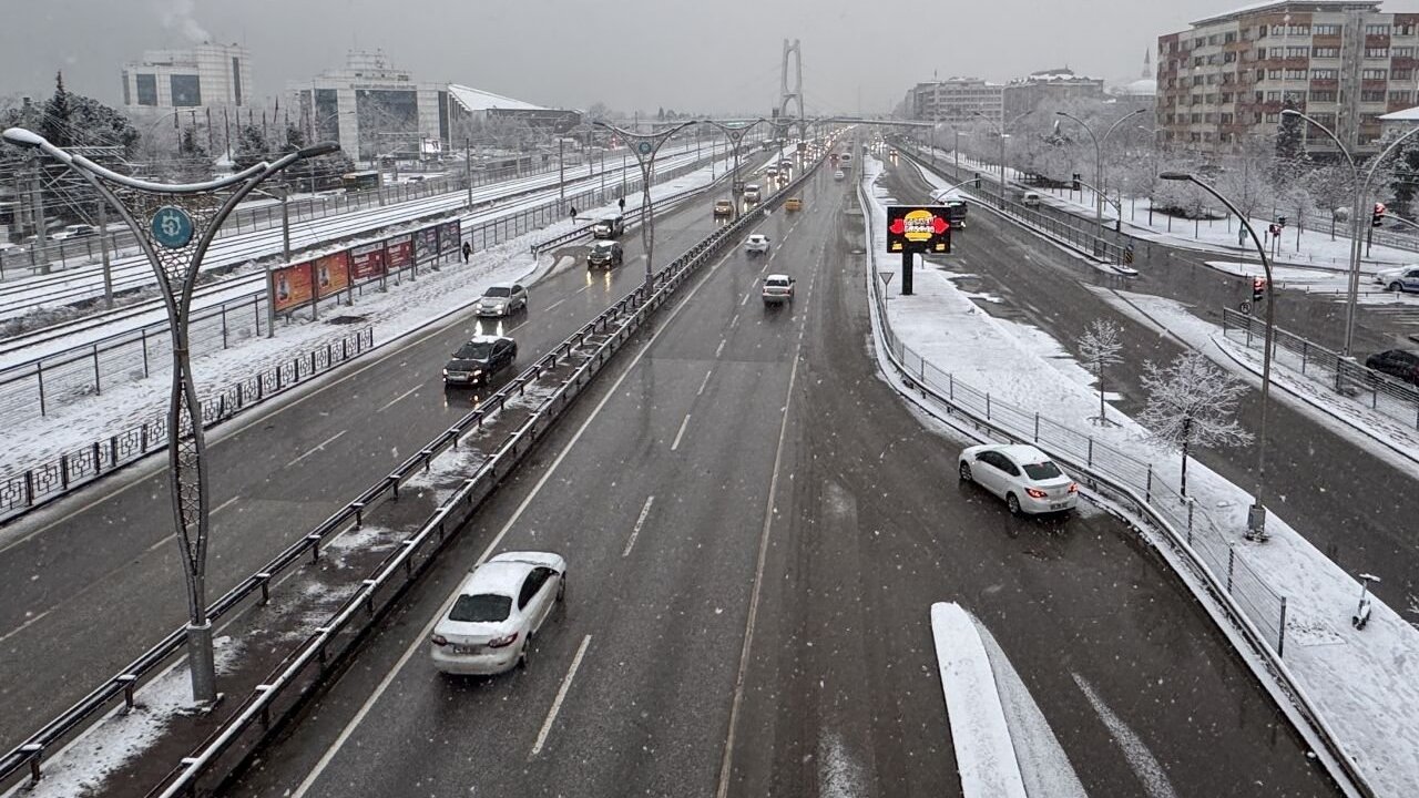 Hava sıcaklığının sıfırın altına düştüğü kentte, kar yağışı nedeniyle yollar, çatılar ve araçların üzeri beyaz örtüyle kaplandı.
